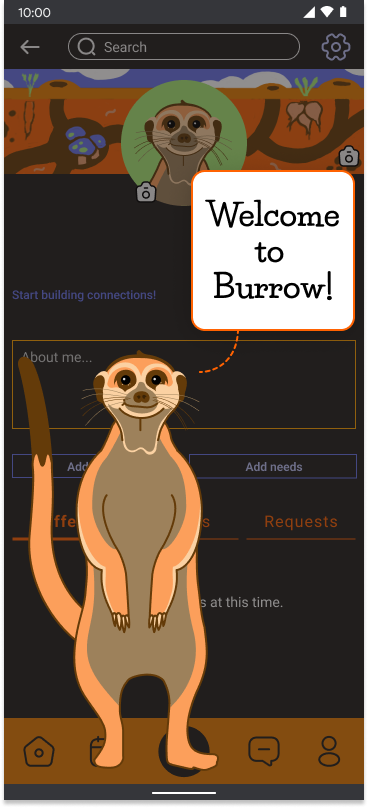 Burrow is a mobile app and responsive website that utilizes a virtual guide to help neighbors build credibility and solidarity in their communities through kind acts.