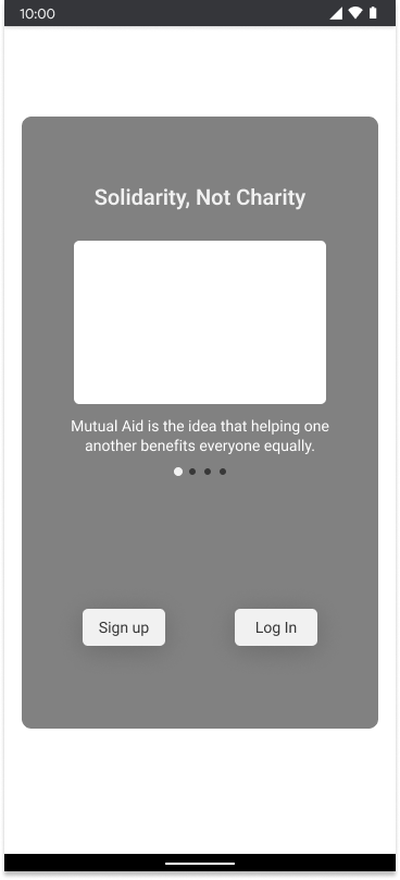 The onboarding flow needs some bright images that tell stories emphasizing the core ideas of mutual aid.