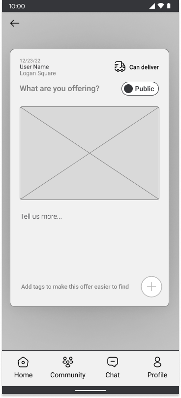 Design an intuitive community board that allows neighbors to post needs, offers, and local events.