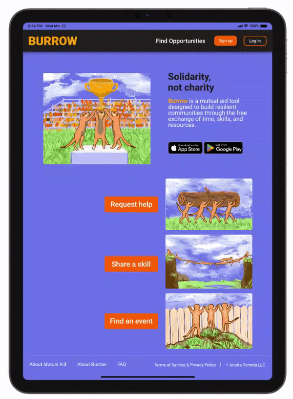Product: Burrow (Mutual Aid App and Responsive Website)